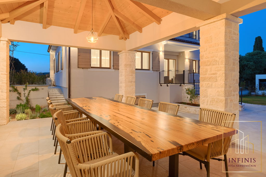 V Rovinjskem Selu se nahaja razkošna vila, ki združuje sodobno arhitekturo, vrhunske materiale in udobje. Ta nepremičnina je popolna izbira za tiste, ki iščejo kombinacijo razkošja in funkcionalnosti.