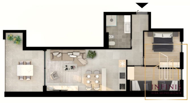 - Terasa: 14,80 m2, pogled na morje ali na celino