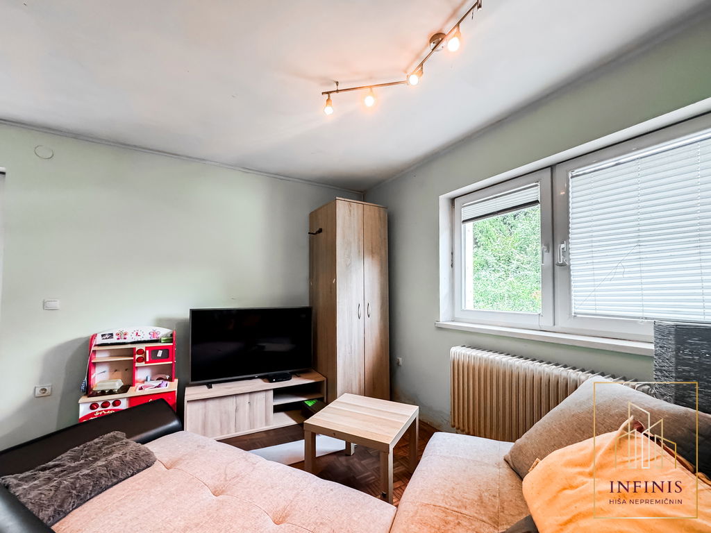 Notranjost stanovanja je svetla in domišljeno razporejena. Obsega prostorno in popolnoma opremljeno kuhinjo z ločeno shrambo, dnevni bivalni prostor, velik predprostor, spalnico ter kopalnico. V kletnem delu se nahaja dodatna soba velikosti 15 m2, ki je trenutno urejena kot pisarna, ter ločen pralni prostor. Takšna razporeditev omogoča udobno bivanje družinam, parom ali posameznikom, ki si želijo več prostora.