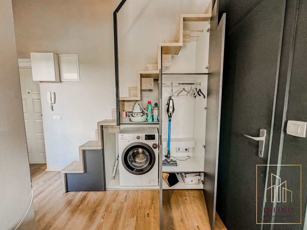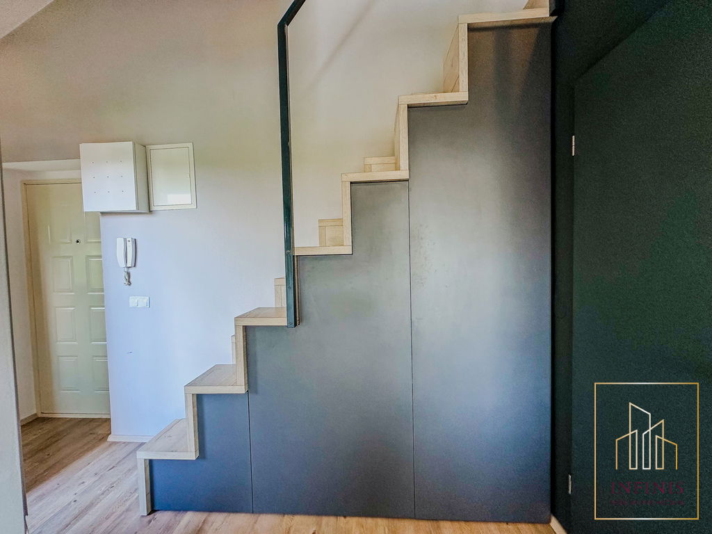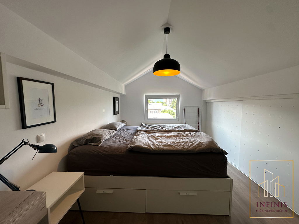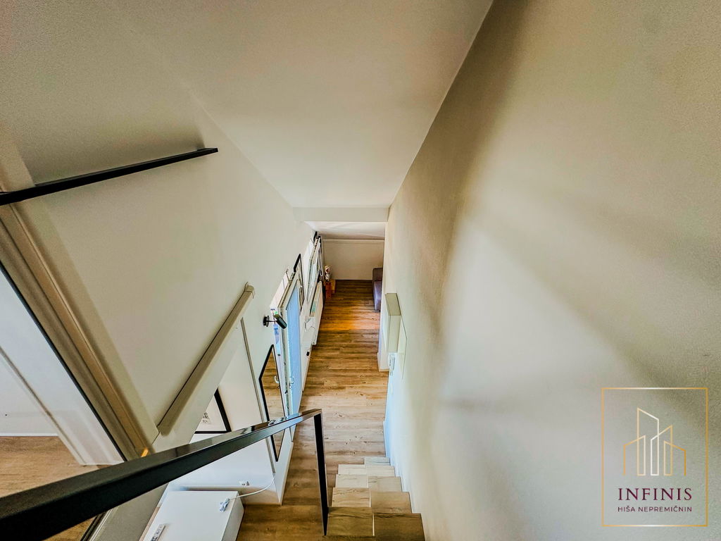Stanovanje obsega skupno 55.3 m2 neto površine in se nahaja v drugem nadstropju stavbe, zgrajene leta 1965. Tloris stanovanja vključuje predprostor, moderno in funkcionalno kuhinjo z vso belo tehniko, dnevno sobo z izhodom na balkon s prijetnim razgledom, spalnico, ki se nahaja v galeriji z pisalnim delom ter kopalnico. Stanovanje ima veliko vgradnih omar, kar omogoča optimalno izrabo prostora za shranjevanje. Vsa oprema narejena po meri!