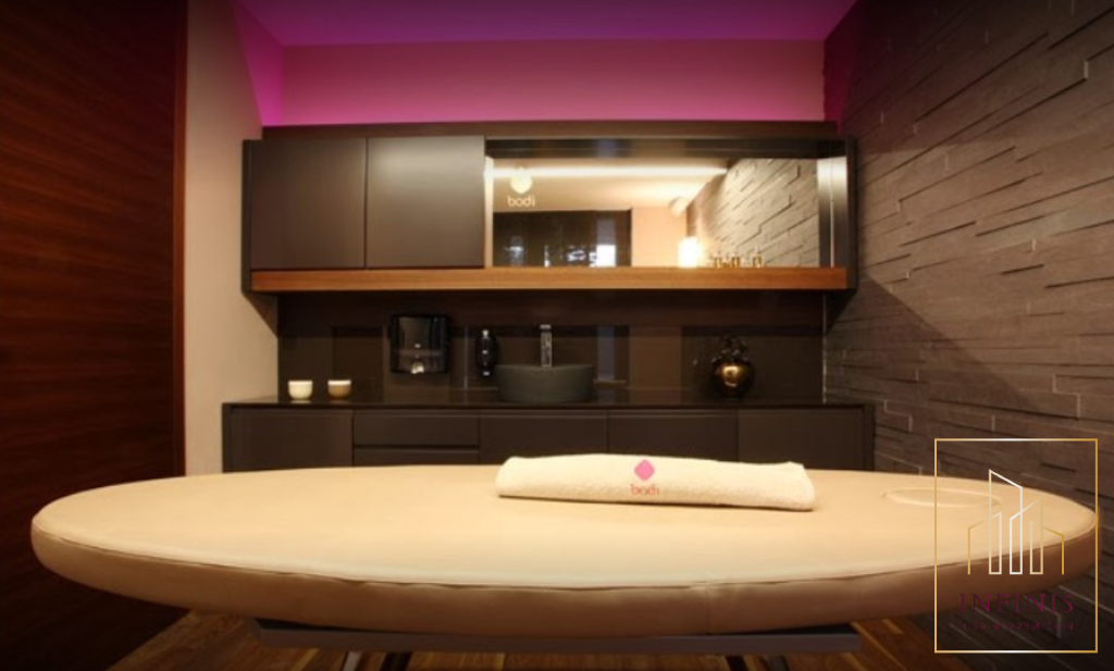 Poleg tega ima salon štiri parkirna mesta v garaži ter dve veliki shrambi, kar omogoča enostavno shranjevanje materialov in pripomočkov. Prostor je klimatiziran, ogrevanje poteka preko toplovoda.