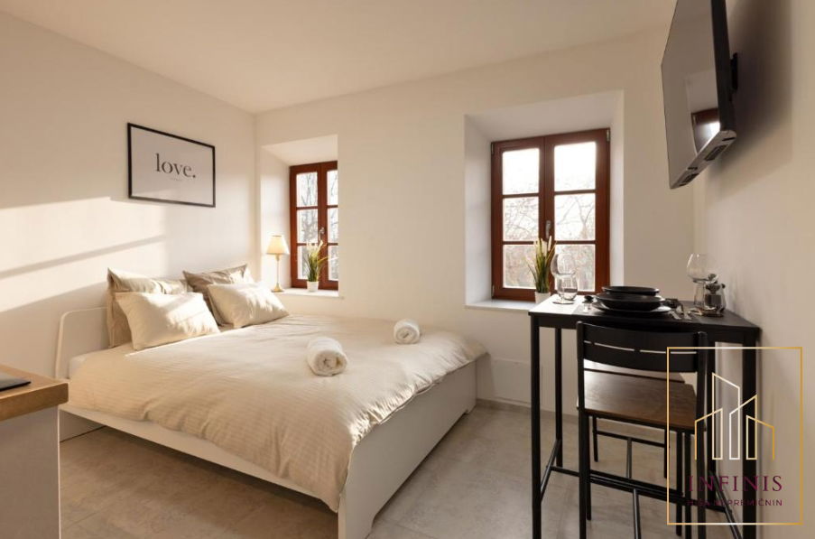 Posredujemo pri prodaji štirih popolnoma opremljenih apartmajev v centru Ljubljane, ki se nahajajo v stavbi zgrajeni leta 1841. Apartmaji so bili v celoti prenovljeni z uporabo kakovostnih materialov in opreme ter se prodajajo izključno kot celota.