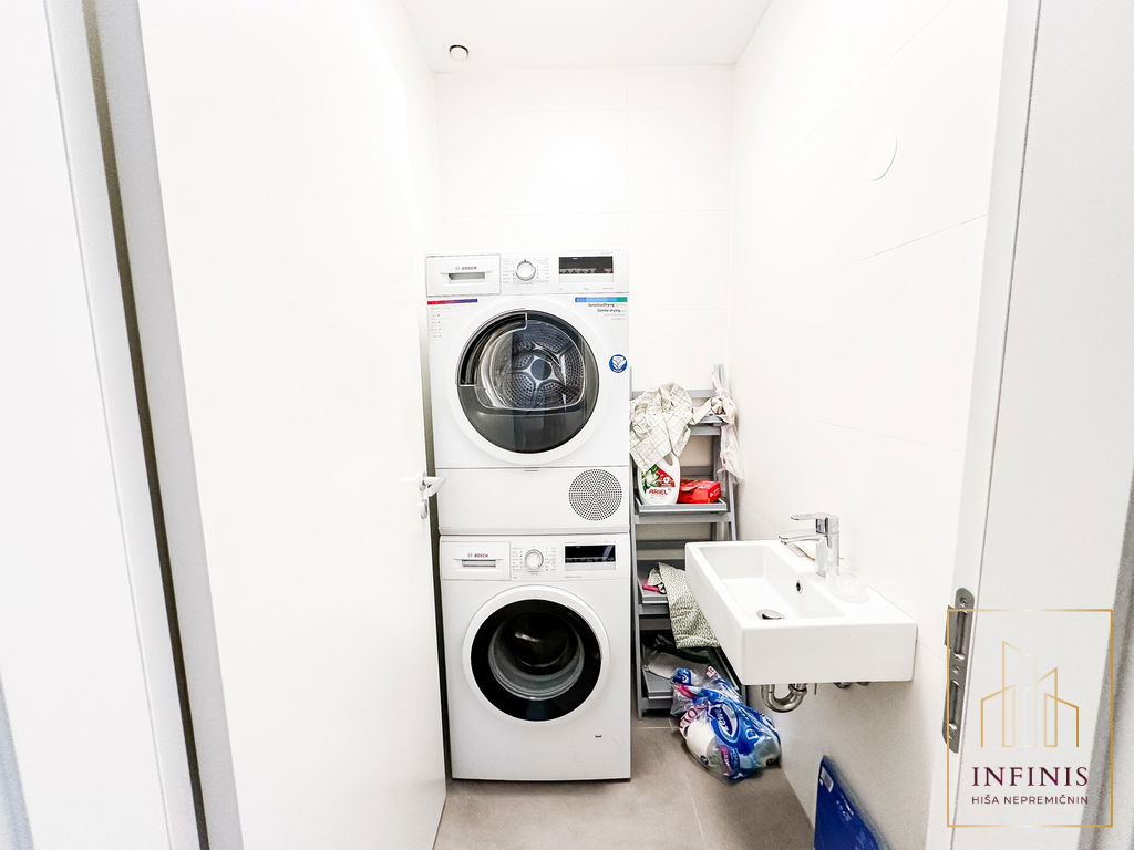 - Utility: Opremljen z pralnim in sušilnim strojem.