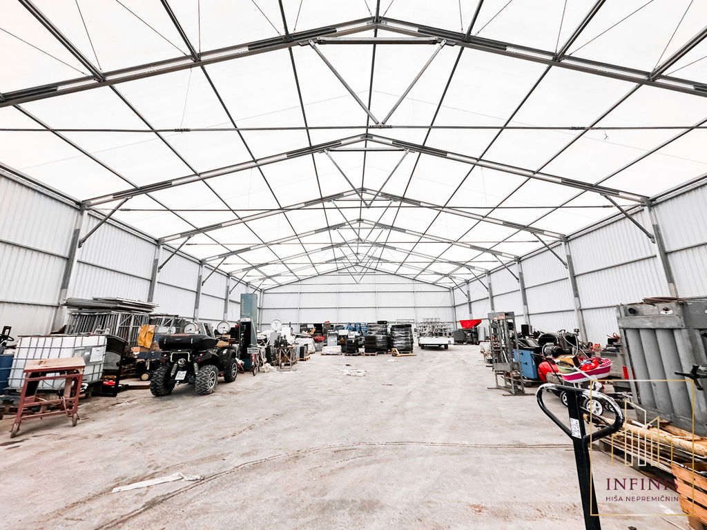 Parcela je velika, kar omogoča shranjevanje večjih predmetov ali blaga. Prostor je idealen za podjetja, ki potrebujejo veliko skladiščno kapaciteto na logistično dostopni lokaciji. Na parceli stoji skladiščni šotor v velikost 600 m2. Šotor ni ogrevan. Dostop do sparcele in šotora je prilagojen za večje tovornjake, vključno s šleperji. Lokacija v industrijski coni zagotavlja hitro povezavo z glavnimi prometnicami in omogoča enostavno logistiko. Možen je najem poljubne kvadrature.