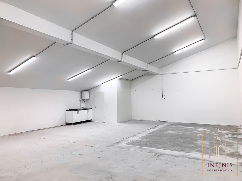 Skladišče je prilagodljivo različnim dejavnostim. Po potrebi je možno prostor razdeliti s knauf stenami in ustvariti ločene enote. V prostoru sta na voljo tudi WC in čajna kuhinja, kar omogoča dodatno udobje za zaposlene. Pripada mu dvorišče pred stavbo ter dodatno še del skladišča v souporabi, velikosti približno 25 m2.