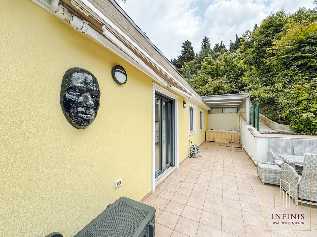 Vsak del objekta je opremljen z materiali visokega cenovnega razreda in sodobno tehnologijo, ki zagotavlja udobno in brezskrbno bivanje. Vila se prodaja popolnoma opremljena. Ogrevanje je urejeno s toplotno črpalko in talnim gretjem.