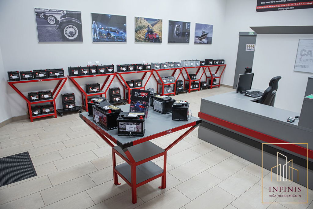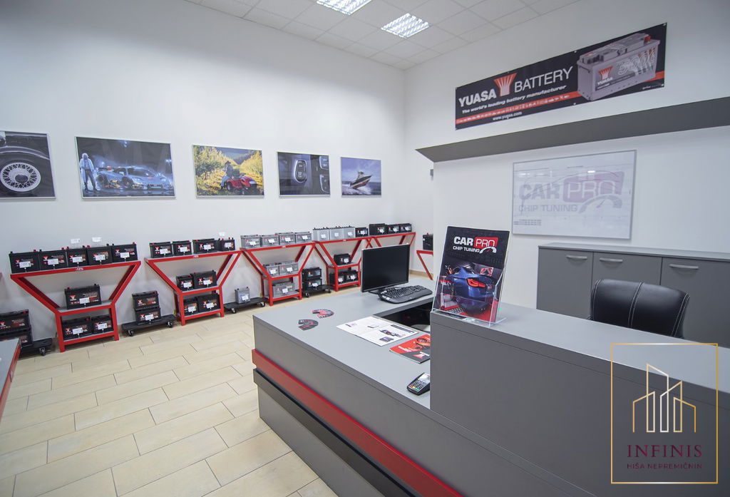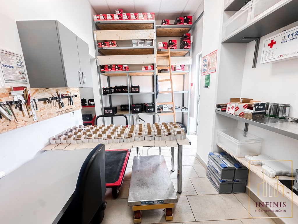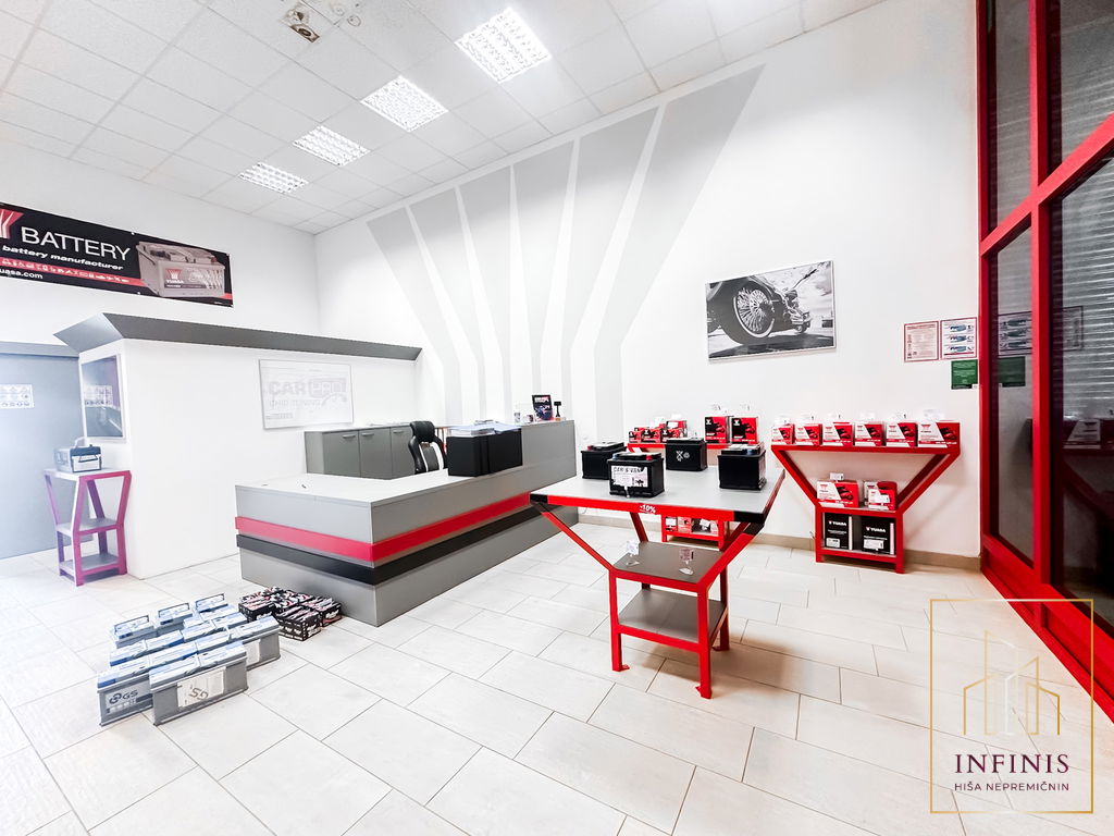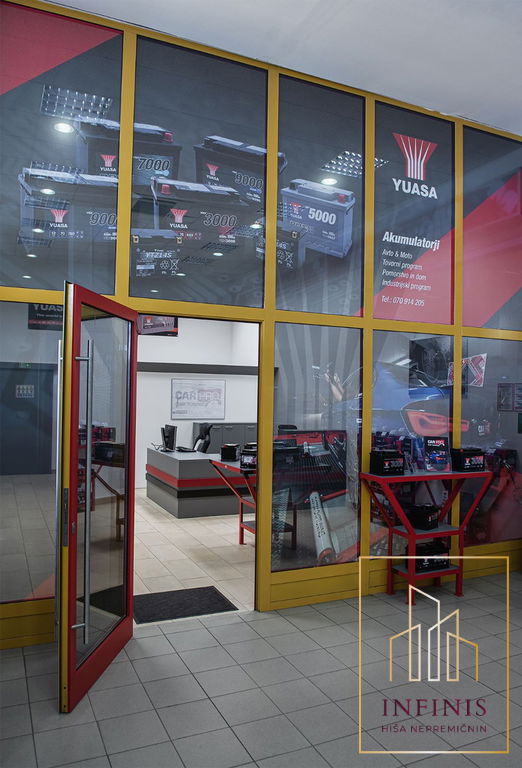 Razporeditev vključuje trgovski del, ločen pisarniški prostor, skladišče in lastne sanitarije. Strop je dovolj visok, da po potrebi omogoča izgradnjo dodatne etaže v velikosti 60 m2, kar odpira možnost povečanja uporabne površine.