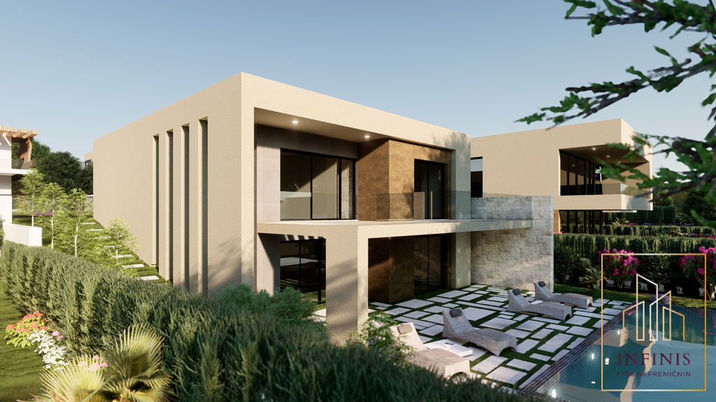 - Dodatne ugodnosti: Vila je opremljena s klimatsko napravo, bazenom ter garažo in dvoriščem.