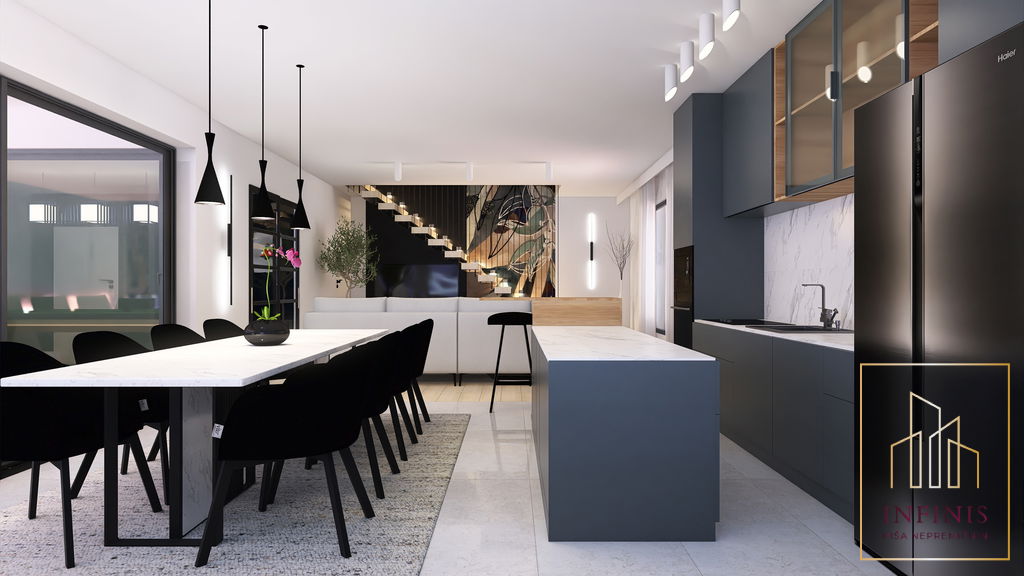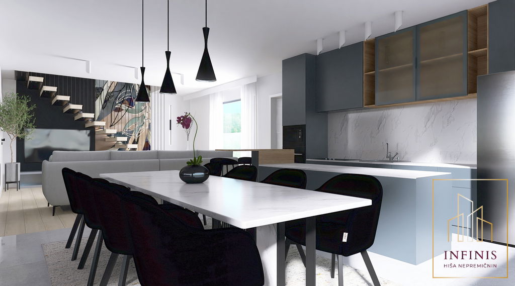 • Prostoren open space dnevni prostor, povezan s sodobno kuhinjo in jedilnico, idealen za druženje,
