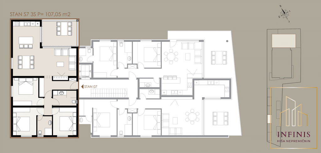 Stanovanje je del novega projekta, stavba je trenutno v fazi izgradnje, predviden zaključek gradnje pa je decembra 2026. Skupna neto površina stanovanja znaša 107,05 m2. Zasnova je usmerjena v udobno bivanje, veliko naravne svetlobe ter kakovostno izkoriščen tloris.
