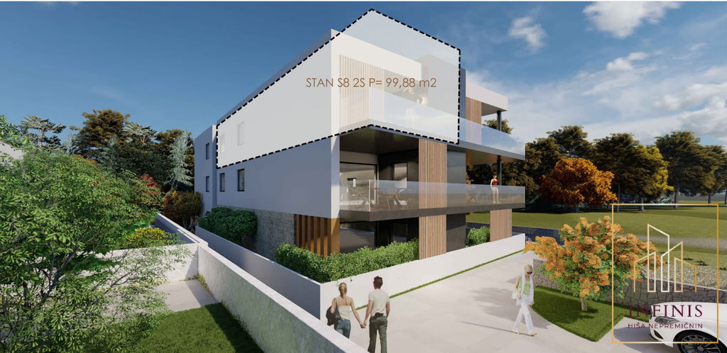 Stanovanje je del novega projekta, stavba je trenutno v fazi izgradnje, predviden zaključek gradnje pa je decembra 2026. Skupna neto površina stanovanja znaša 99,88 m2. Zasnova je usmerjena v udobno bivanje, veliko naravne svetlobe ter kakovostno izkoriščen tloris.