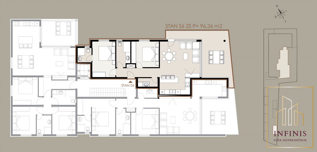 Stanovanje je del novega projekta, stavba je trenutno v fazi izgradnje, predviden zaključek gradnje pa je decembra 2026. Skupna neto površina stanovanja znaša 96,36 m2. Zasnova je usmerjena v udobno bivanje, veliko naravne svetlobe ter kakovostno izkoriščen tloris.